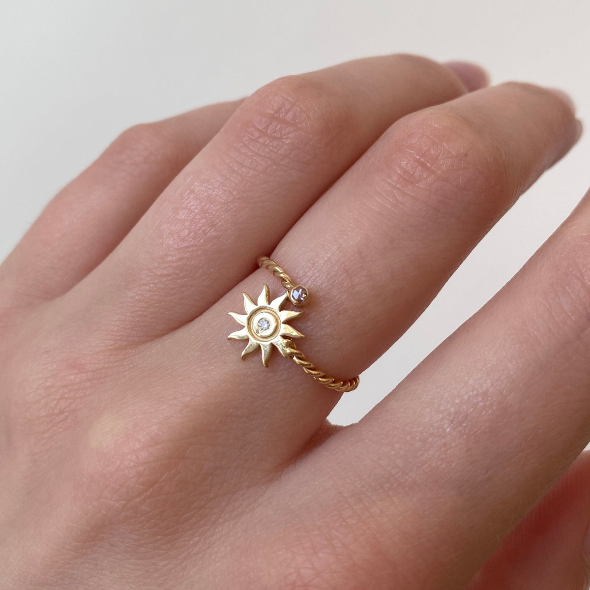 14k gold the color of your choosing is perfectly twisted into a solid band and finished off with a pristine rose cut diamond and the Mini motif or gemstone of your choosing. Ideal for the Misahara Mini collector in your life, for those just starting their fine jewelry collection, or for the one who loves all things mini. Never lacking in quality, these are of the highest quality craftsmanship while maintaining a playful, unpretentious charm. As with all our Mini Collections, these pieces have profound storytelling ability. Which for us, is a most rewarding element of designing fine jewelry.